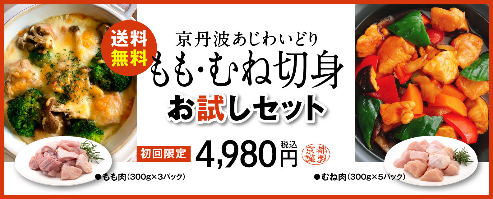 【初回送料無料】-切身お試しセット-京丹波あじわいどり(もも切身300g×3パック、むね切身300g×5パック)